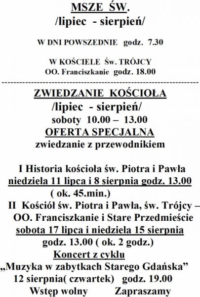 MSZE ŚW. /lipiec - sierpień/ W DNI POWSZEDNIE godz. 7.30
